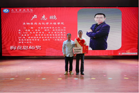 颁奖环节中,刘宏业登台为生物医药与化学工程学院的卢志鹏老师颁发“梅花恩师奖” 。刘宏业在讲话时,眼眶微微泛红,动情地回忆起自己29年前坐着绿皮火车来到学校就读时的难忘岁月。他深情讲述着英语教师李晓梅爱生如子、无私奉献的点点滴滴,那些尘封的往事在他的叙述中鲜活起来。他感慨地提到,正是当年李晓梅老师在课堂上的悉心教导、生活中的关怀备至,始终秉持默默付出的奉献精神、毫无私念的育人初心,才为自己后续走出校园、踏入社会,投身实业领域赋予了坚实的底气,让他有勇气在竞争激烈的市场中开拓事业版图,更在站稳脚跟后,心怀感恩,萌生出回馈教育的强烈志气。